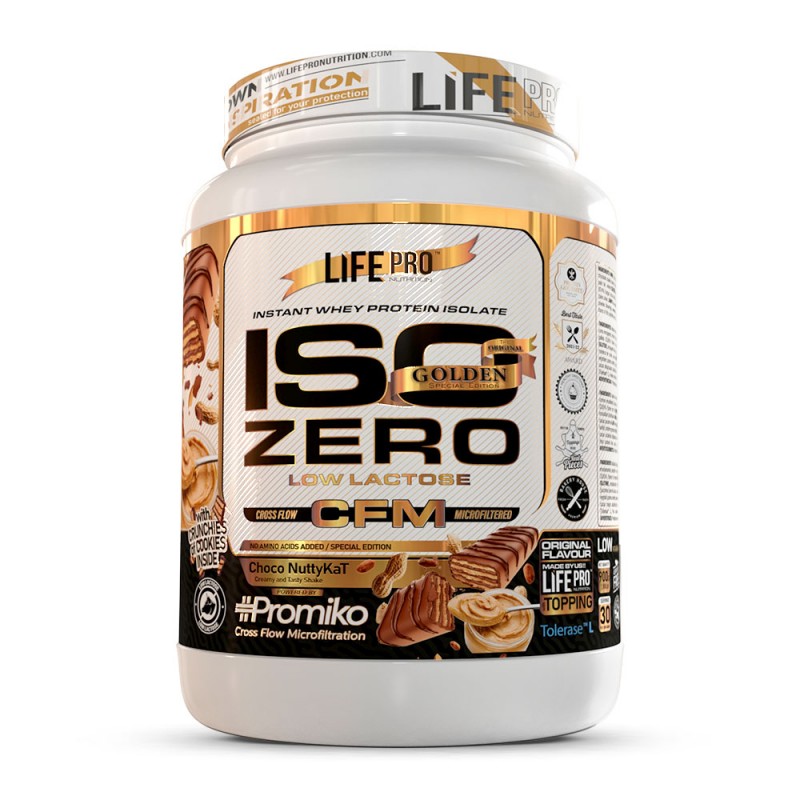 La nueva Proteína aislada diseñada por Life Pro. Nueva línea de sabores gourmet. Elaborada con proteína de suero de leche.